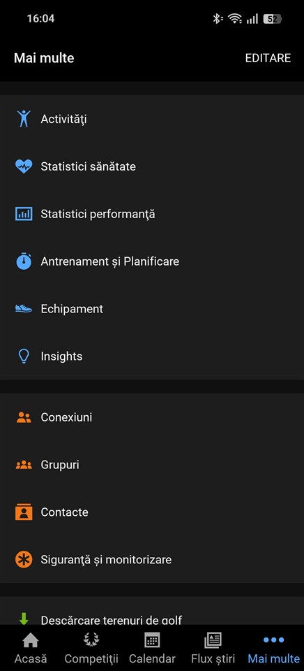 Ce mi s-a părut puțin ciudat este că, aparte de aplicațiile despre care am vorbit mai sus, pentru a monitoriza și pentru a primi informații și mai precise pentru anumite activități fizice (outdoor, scufundări și golf), Garmin mai are nevoie de alte aplicații pentru smartphone – Garmin Explore, Garmin Dive și Garmin Golf. Astfel, dacă vrei să încerci tot ce îți poate pune la dispoziție Garmin fenix 8 Pro vei instala cam șase aplicații pe smartphone, în total…