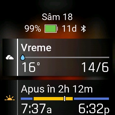 🔺Având bateria la 99%, ceasul estimează o autonomie de circa 11 zile, după modul meu de folosire din ultimul timp.