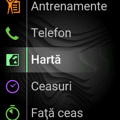 Nu am cum să nu amintesc de hărțile disponibile offline direct pe ceas, pe care le poți descărca printr-o conexiune Wi-Fi atunci când ai ocazia. Hărțile afișate direct pe ecranul ceasului nu au nevoie de conexiune de date și nici ca telefonul să fie conectat la smartwatch. Hărțile sunt detaliate și există chiar mod topografic, ideal pentru cei care se aventurează în zone cu diferențe de nivel.