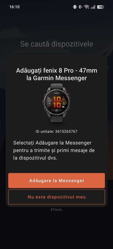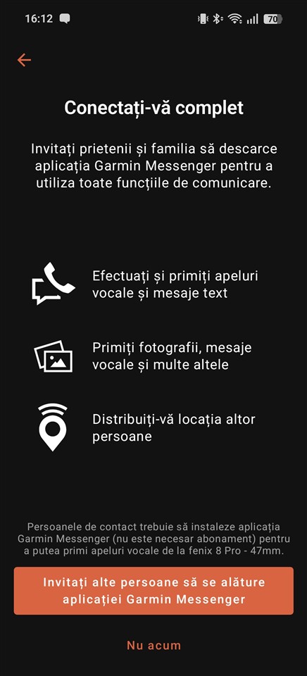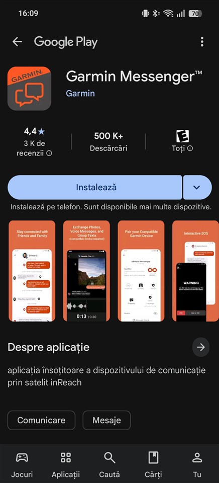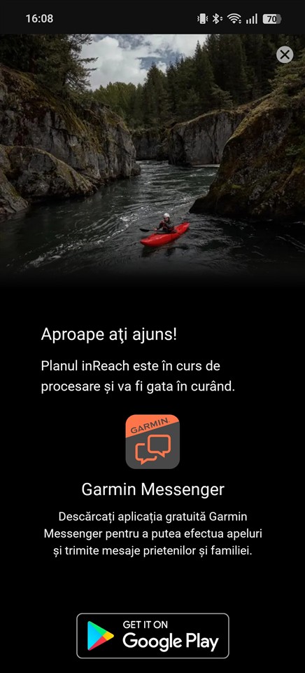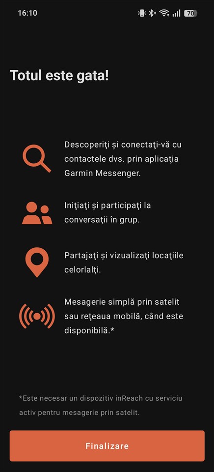 Iar dacă vrei să activezi un plan inReach, adică să folosești serviciile bazate pe conexiunea LTE și cea satelit, inclusiv cu mesaje transmise prin satelit, atunci este nevoie de o a treia aplicație pe smartphone, anume Garmin Messenger.