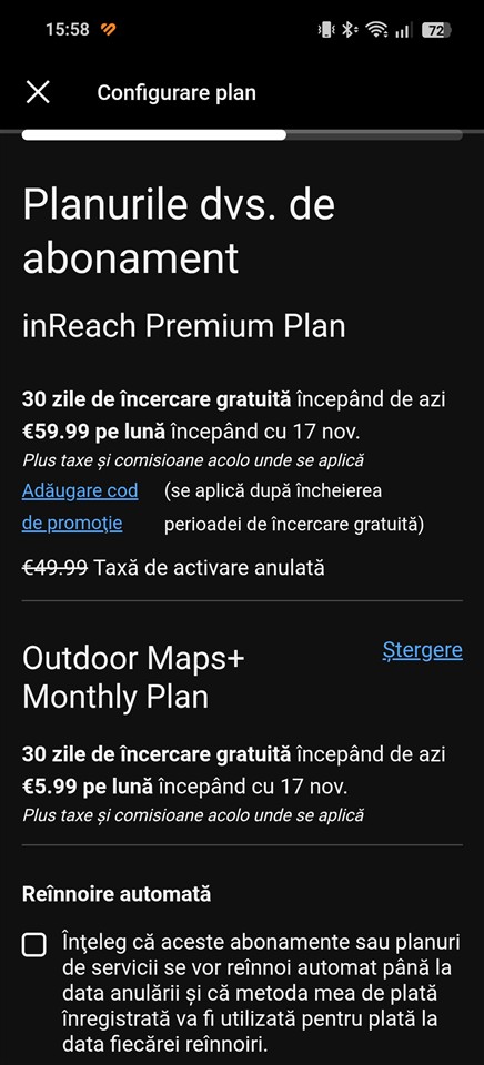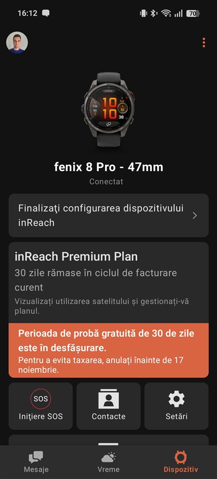 🔺Spre a putea folosi mereu mesageria satelit ai nevoie de un plan tarifar Garmin inReach, dar poți testa gratuit un astfel de abonament timp de 30 de zile.