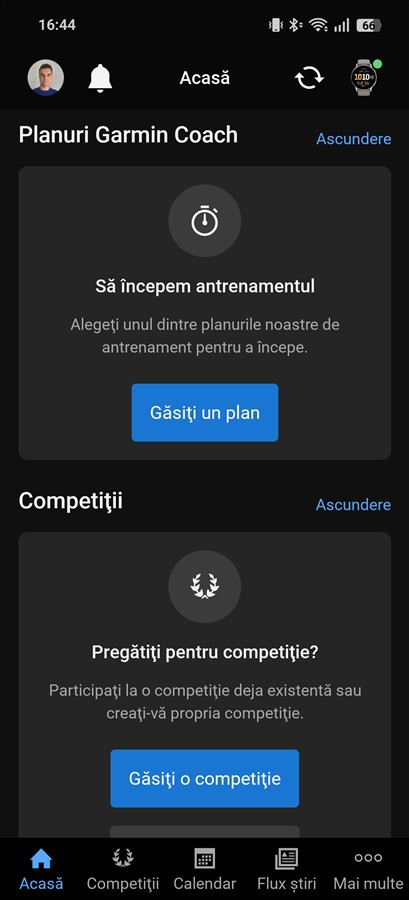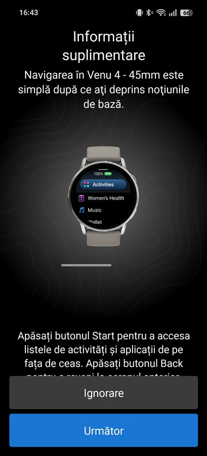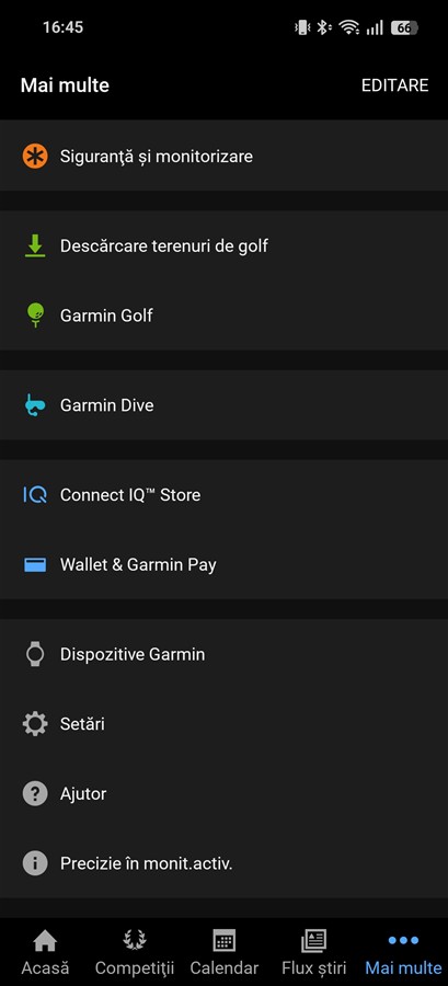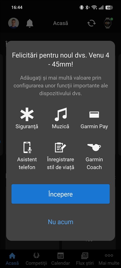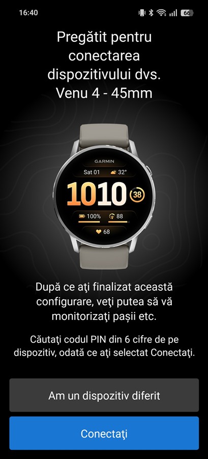La fel ca la orice smartwatch, și la acesta este necesar să ai cel puțin o aplicație instalată pe smartphone, iar cea de bază este Garmin Connect.