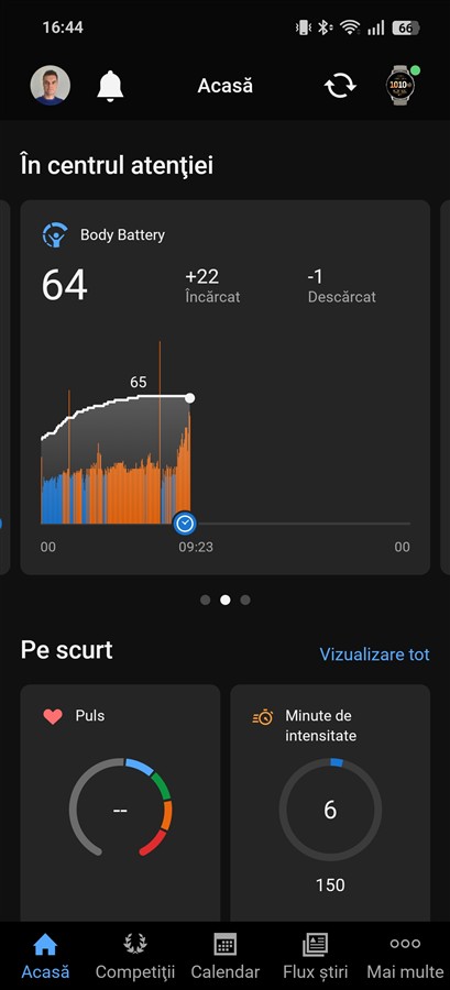 Da, secțiunea Body Battery chiar este de apreciat, mai ales că acolo ai mereu detalii actualizate, cât de mult „te-ai consumat” și ce ai putea face spre a-ți reveni mai eficient.
