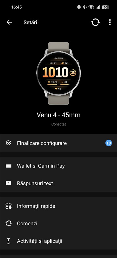 Și de această dată trebuie să amendez faptul că pentru a avea acces complet la tot ce poate oferi Garmin Venu 4 mai trebuie să instalezi cel puțin o aplicație, anume Garmin Connect IQ, cea care îți dă șansa de a adăuga mai multe aplicații și fețe de ceas, opțiuni pe care nu le ai direct din Garmin Connect. Iar asta este foarte ciudat, întrucât Garmin Connect este o aplicație foarte, dar foarte complexă, care pe unii i-ar putea „speria” inițial. Da, sunt multe, parcă prea multe opțiuni pe acolo, dar, pe de altă parte, asta face din Garmin… Garmin. Vreau să spun că atât din ceas, cât și din aplicațiile conexe poți să personalizezi extensiv, aproape nelimitat cum să arate, ce să arate și când să arate informații, date și statistici Garmin Venu 4. Din partea mea, apreciez așa ceva, mai bine să am fel de fel de opțiuni la dispoziție și să nu le folosesc, decât să-mi fi dorit ceva anume, iar acel ceva să nu existe.