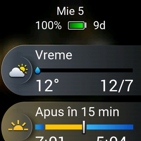 - raporturi detaliate și concludente pentru sănătate și activități fizice, simplu de parcurs direct de pe ceas;