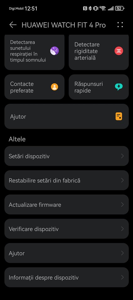 Ce aș putea trece ca minusuri pentru un dispozitiv ce se recomandă drept smartwatch este limitarea accentuată în ceea ce privește posibilitatea de a instala aplicații suplimentare celor cu care vine ceasul la pachet. Niciodată Huawei nu a excelat aici, nici măcar la smartwatch-urile din seriile superioare, dar asta nu vine ca o scuză pentru Huawei Watch Fit 4 Pro.