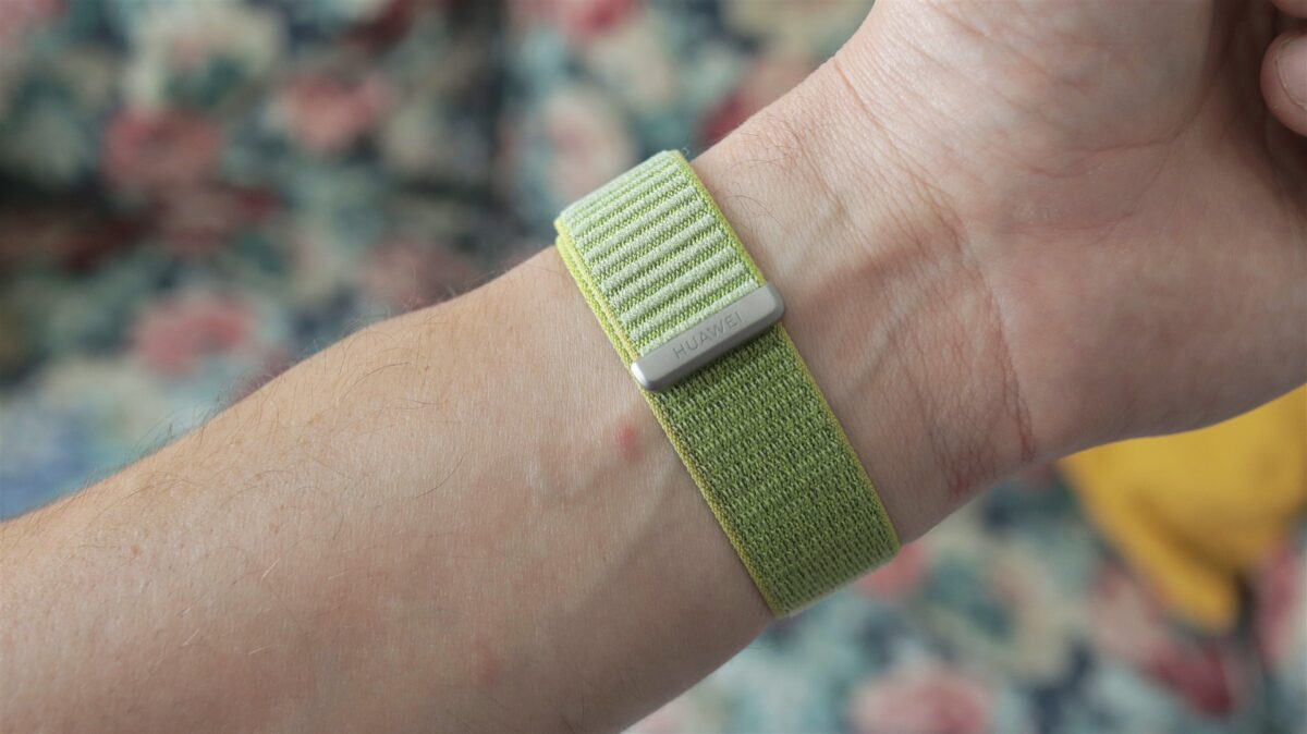 Dacă la versiunea non-pro cureaua este una clasică, să o numim, din fluoroelastomer (un fel de silicon, cauciuc), la ediția în culoare verde a Huawei Watch Fit 4 Pro avem o curea din țesătură, una din nailon. Aceasta permite o ajustare foarte precisă a grosimii, grație faptul că poți fixa partea mobilă oriunde pe cea fixă, să o numim, grație inserțiilor velcro. Sigur că la ambele variante poți schimba curelele / brățările cu altele compatibile, sistemul de montaj fiind foarte simplu. Apeși un buton de pe spatele ceasului și brățara este eliberată imediat, pentru ca la refixare să fie nevoie doar să introduci elementul metalic de fixare în locașul dedicat.