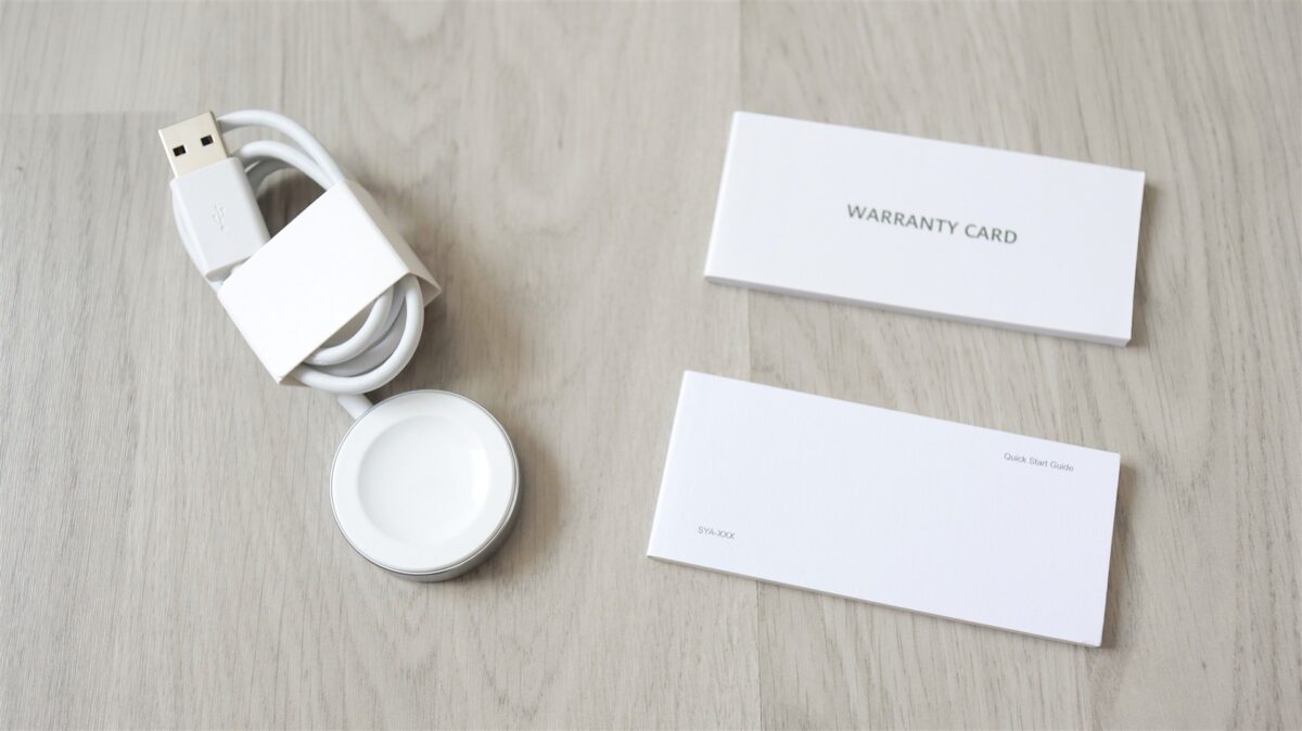 Așa cum am precizat deja, am primit atât un Huawei Watch Fit 4 Pro, cât și o versiune non-pro, dar în ambele cazuri cutiile conțin aceleași lucruri. Avem ceasurile cu brățările montate, un încărcător wireless și două pliante – certificat de garanție și ghid de pornire rapidă.
