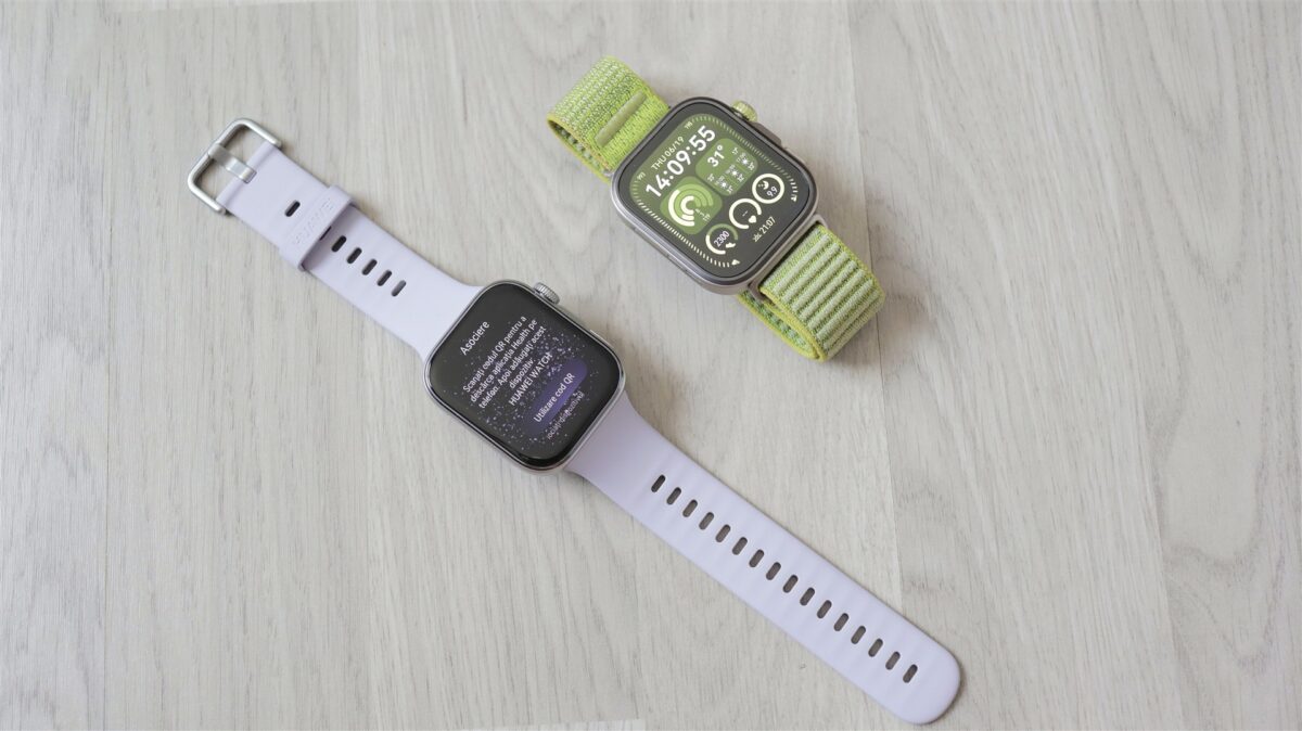 | Ecran | Touchscreen AMOLED de 1.82 inch, rezoluție 480 x 408 pixeli, densitate 347 ppi, luminozitate maximă 3000 niți, protecție cu sticlă safir | Touchscreen AMOLED de 1.82 inch, rezoluție 480 x 408 pixeli, densitate 347 ppi, luminozitate maximă 2000 niți |