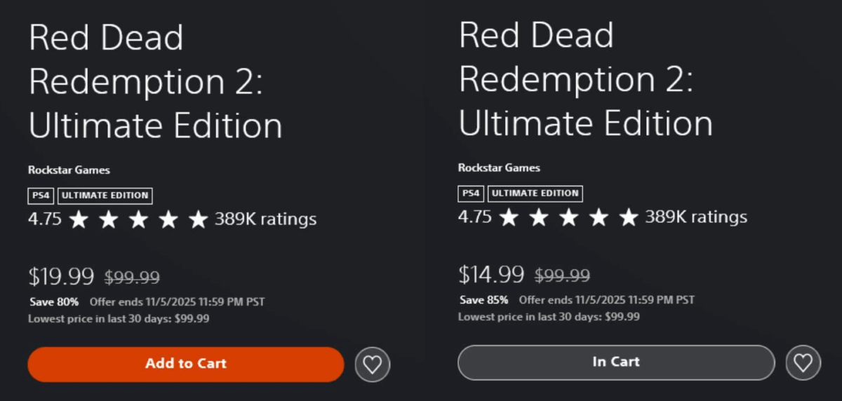 Unul dintre utilizatori a scris pe Reddit că în cazul jocului Red Dead Redemption 2: Ultima Edition, el a primit un preţ promo de 19.99 dolari, în timp ce soţia sa pe contul său a primit preţul promo de 14.99 dolari. Şi totul la un interval de câteva minute.