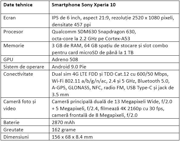 Pentru prețul său, mai ales pentru cel inițial, Sony Xperia 10 nu oferă ce trebuie în acest sector. Ansamblul hardware lasă mult de dorit, nu doar procesorul fiind unul depășit (sau măcar inadecvat raportat la preț), ci și cantitatea de memorie RAM fiind parcă insuficientă.