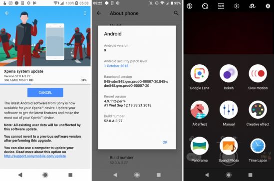 Utilizatorii smartphone-urilor Sony Xperia XZ2 şi XZ2 Compact au început să primească update-ul oficial către Android 9.0 Pie. Actualizarea are o mărime de 1059 MB şi face trecerea de la versiunea 51.1.A.11.51 la 52.0.A.3.27.