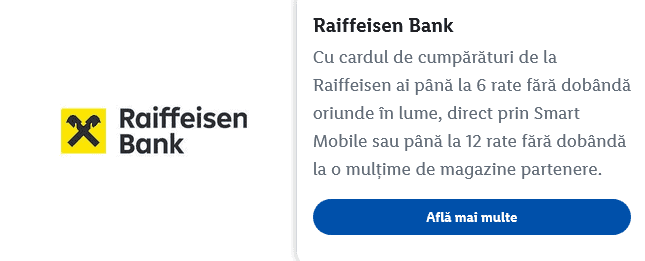 - Raiffeisen – ai până la 12 rate fără dobândă.