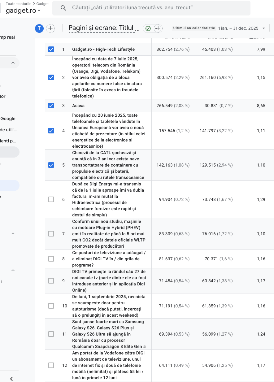 Am făcut câte un sumar pe lunile septembrie 2025 și octombrie 2025. Noiembrie și decembrie 2025 au fost alte luni de-a dreptul excelente în ce privește valorile atinse pe Gadget.ro.