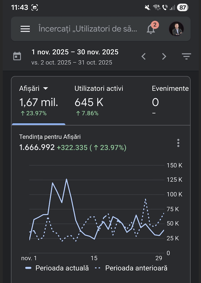 Noiembrie 2025 – 645.000 unici și 1.67 milioane afișări (creștere de 7.86% față de noiembrie 2024 pe unici și 23.97% pe afișări). A fost cea mai bună lună din istoria site-ului în ce privește afișările;