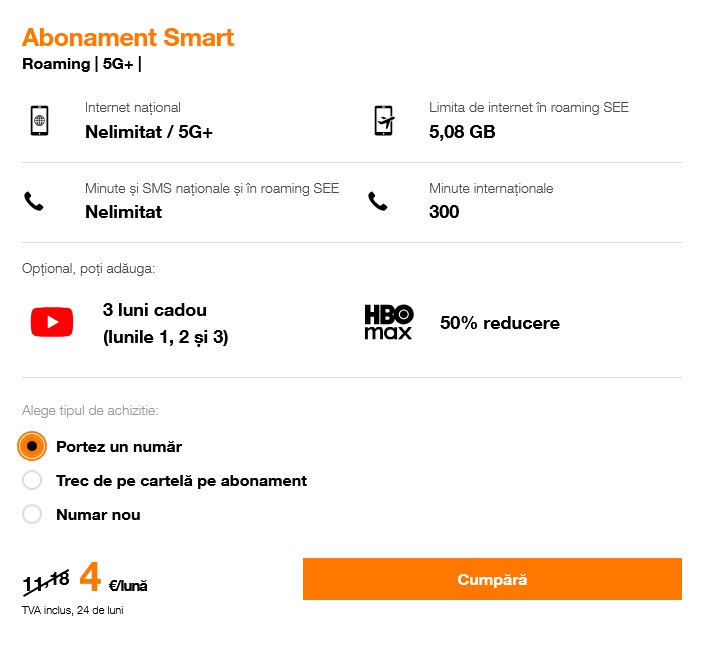 Dacă aceea v-a atras, haideţi să vedeţi ce a pregătit Orange. Pentru doar 4 euro / lună pe toată perioada contractualuă de 24 de luni, puteţi primi următoarele resurse: