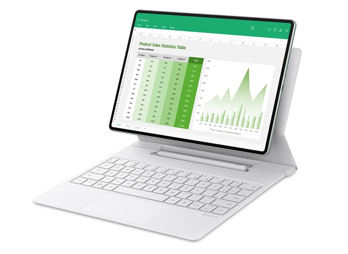 Alături de Huawei MatePad Pro 12.2” 2025 poate fi adusă și tastatura Huawei Glide, care oferă un mod studio, materiale de calitate aerospațială și un spațiu de depozitare 2-în-1 pentru stylus și încărcare.