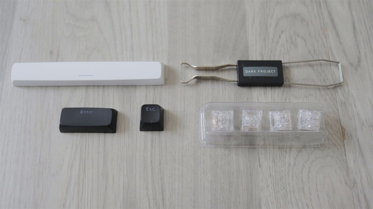 Am primit produsul de test în cutia de retail, în care, pe lângă tastatura propriu-zisă, mai sunt o sumedenie de accesorii. Într-o punguță separată avem trei taste de schimb, 4 switch-uri de schimb și o mică unealtă pentru scos tastele și switch-urile, iar în altă punguță sunt ceva piese de schimb – un set de piciorușe din cauciuc, 4 arcuri, 4 manșoane de cauciuc și 4 șuruburi. Separat mai este cablul de la USB-C la USB-A înfășurat în țesătură textilă și cu lungimea de circa 1.8 metri, plus câteva pliante cu diferite informații, printre care ghid de pornire rapidă și certificat de garanție.