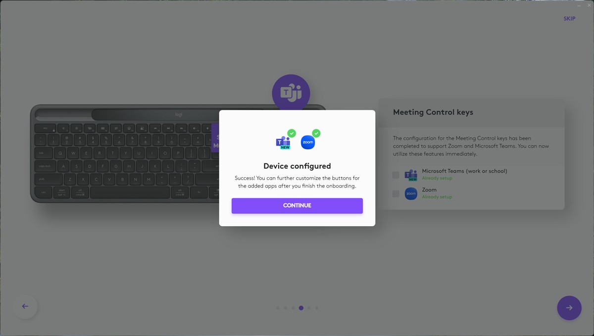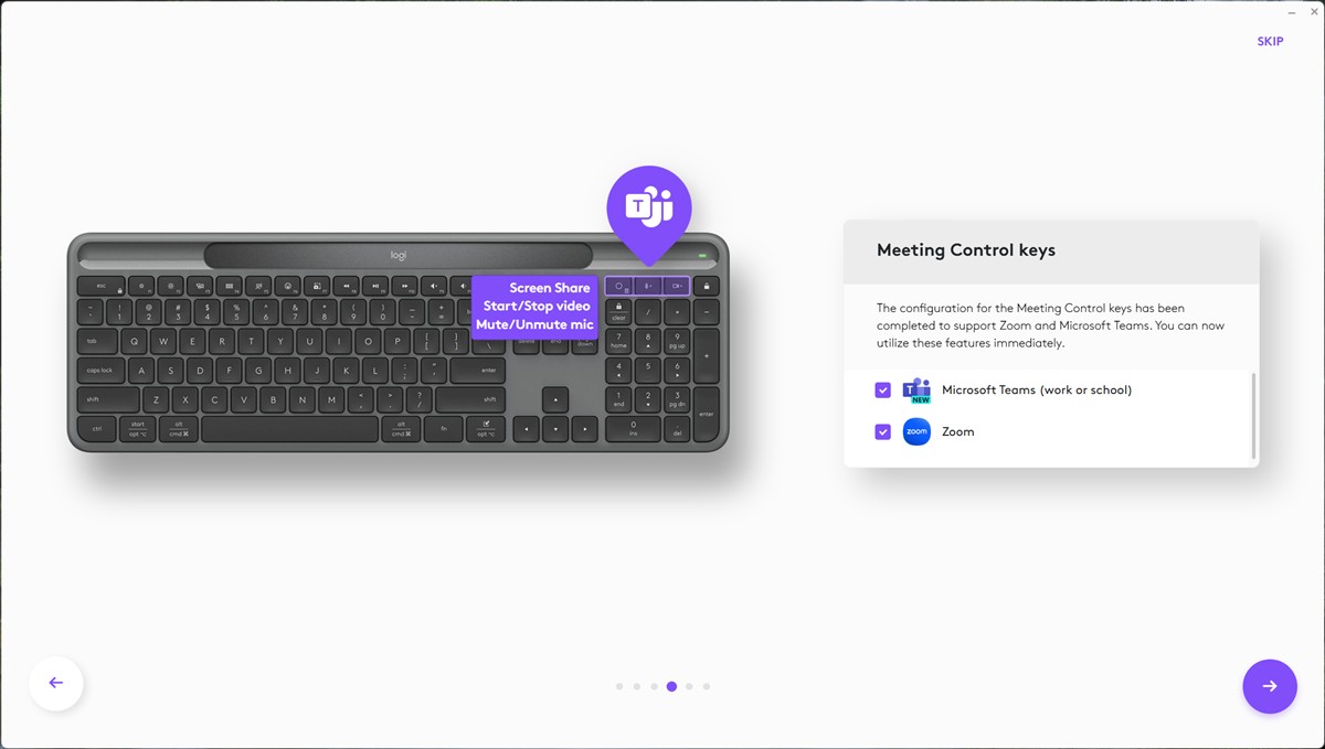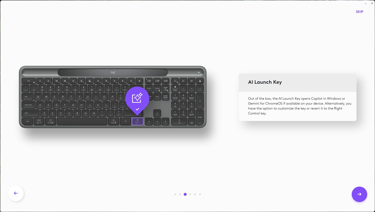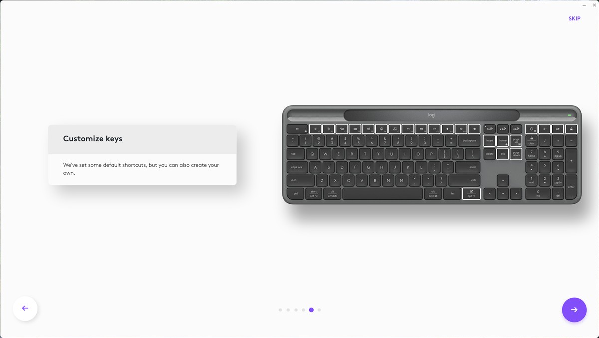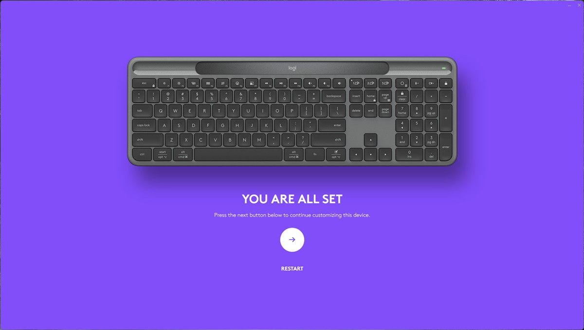 Capturi de ecran din aplicația Logi Options+ pentru Windows 11 cu tastatura Logitech Signature Slim Solar+: