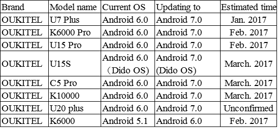 Oukitel a trimis detalii legate de smartphone-urile din portofoliul său, telefoane ce primesc update la Android 7.0 Nougat în 2017. Lista este cuprinzătoare: U7 Plus, U15 Pro, U15S, K6000 Pro, K10000, C5 Pro și U20 Plus ar trebui ca în anul viitor să treacă pe cea mai nouă iterație Android.