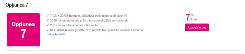 - 7 GB internet 4G + 30 GB bonus cu GIGADAY (1 GB în fiecare zi);