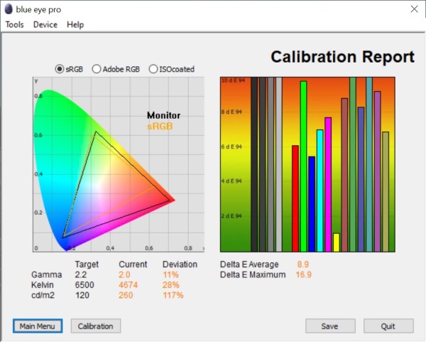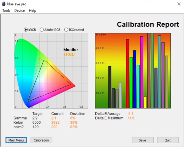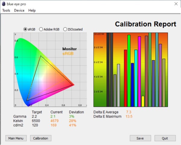 După ce am calibrat ecranul, am obținut deviații ceva mai mici, dar nu cu mult, semn că Hisense 65E7HQ poate fi folosit fără nici cea mai mică problemă așa cum vine din fabrică, în cele două moduri de afișaj pe care le-am menționat mai sus.