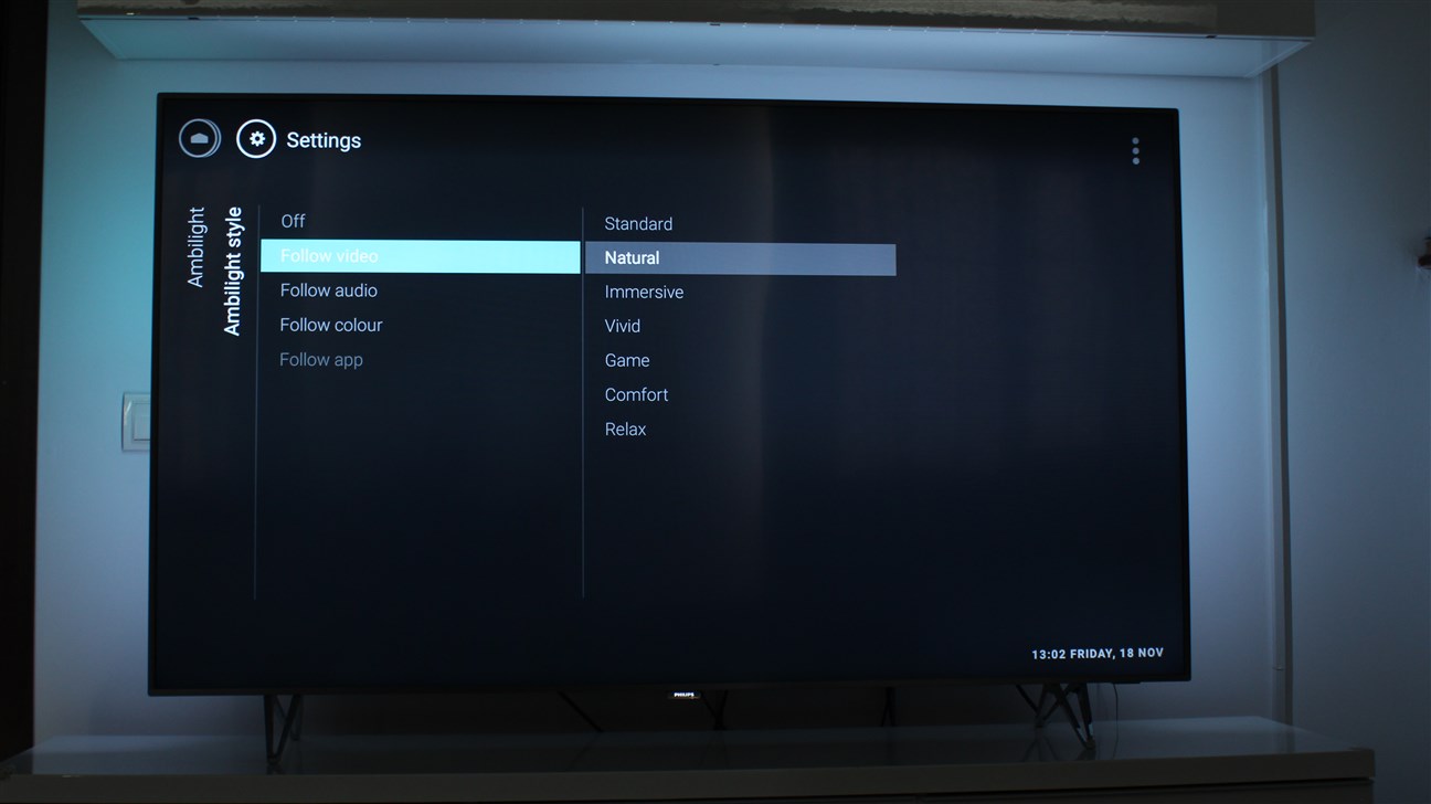 Poți alege ca Ambilight să fie în concordanță cu sunetul și nu cu imaginea. Atunci creezi practic lumini de club, chiar interesante la o petrecere.