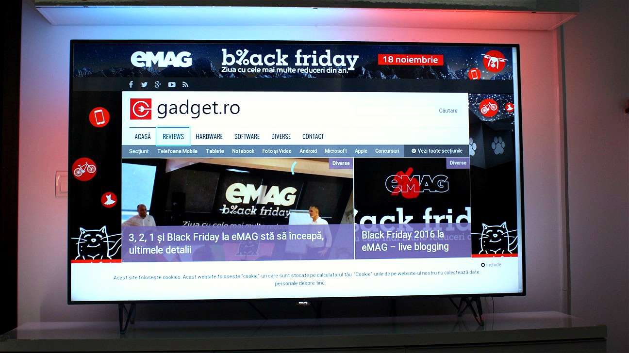 Să spunem câteva cuvinte și despre Ambilight, o tehnologie pe care, recunosc, nu o vedeam importantă. În sensul că nu aceasta m-ar fi convins să aleg un Philips. Însă, după cele câteva zile în compania lui Philips 65PUS7601/12, trebuie să recunosc că este interesantă. Nu spun să o țineți activată tot timpul, dar în unele momente chiar face diferența.