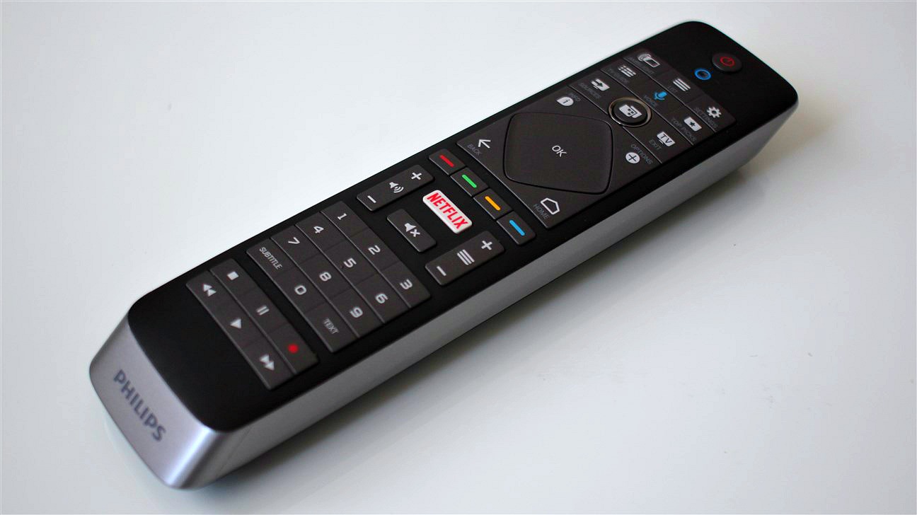 Telecomanda lui Philips 65PUS7601/12, cea pe care o primim direct din cutie, ne ajută puțin în navigarea prin funcțiile televizorului, dar nu poate face minuni. Este de dimensiuni mari și are o greutate apreciabilă. Am uita să o cântăresc, însă cu siguranță se apropie dacă nu chiar depășește 200 de grame.