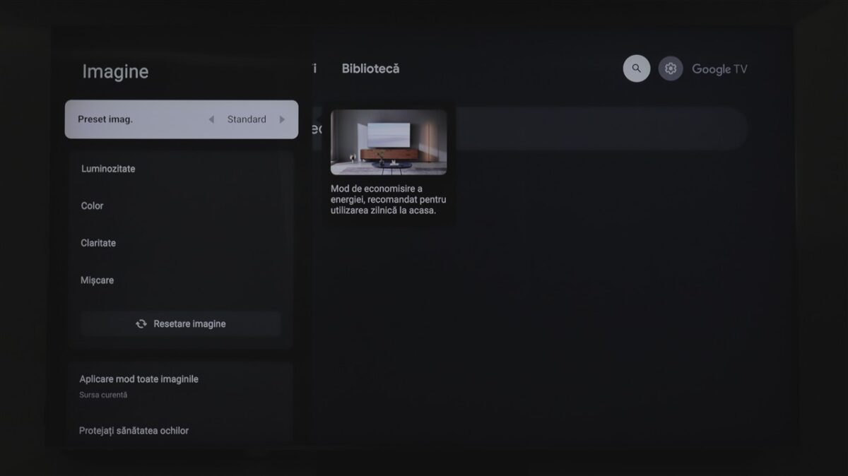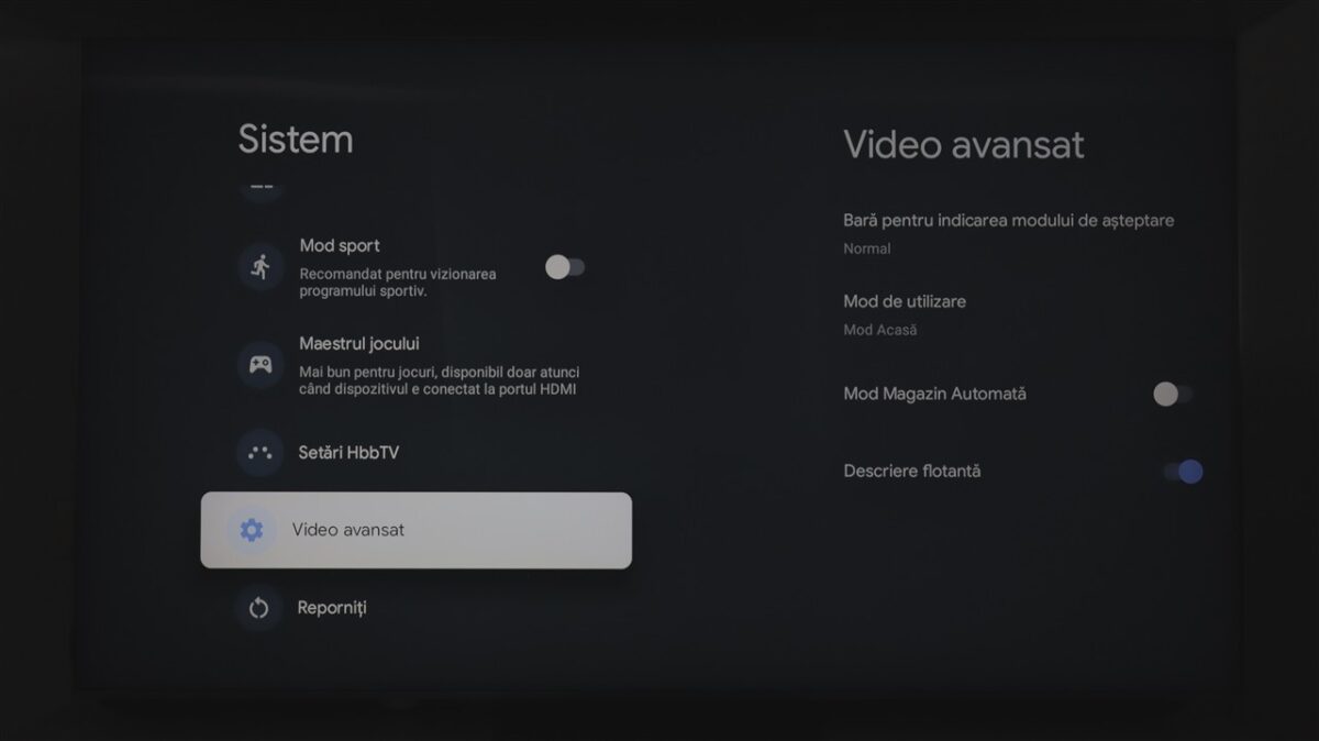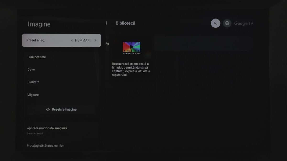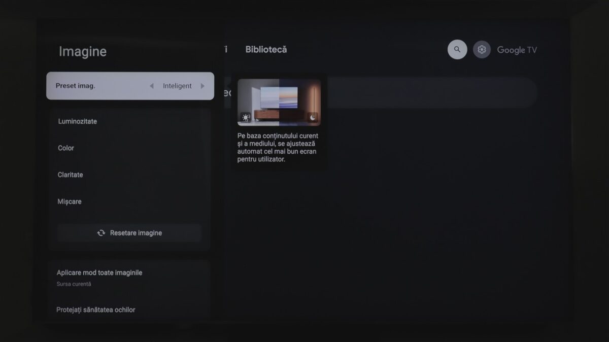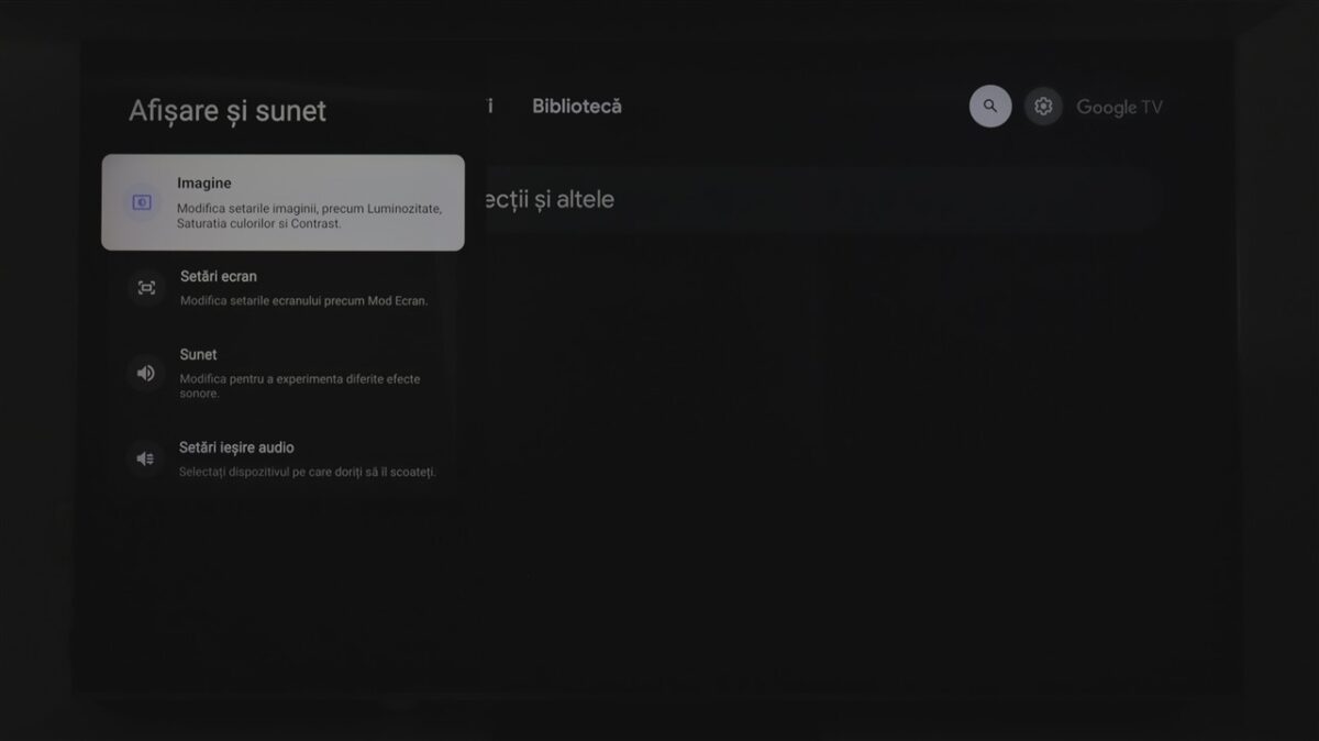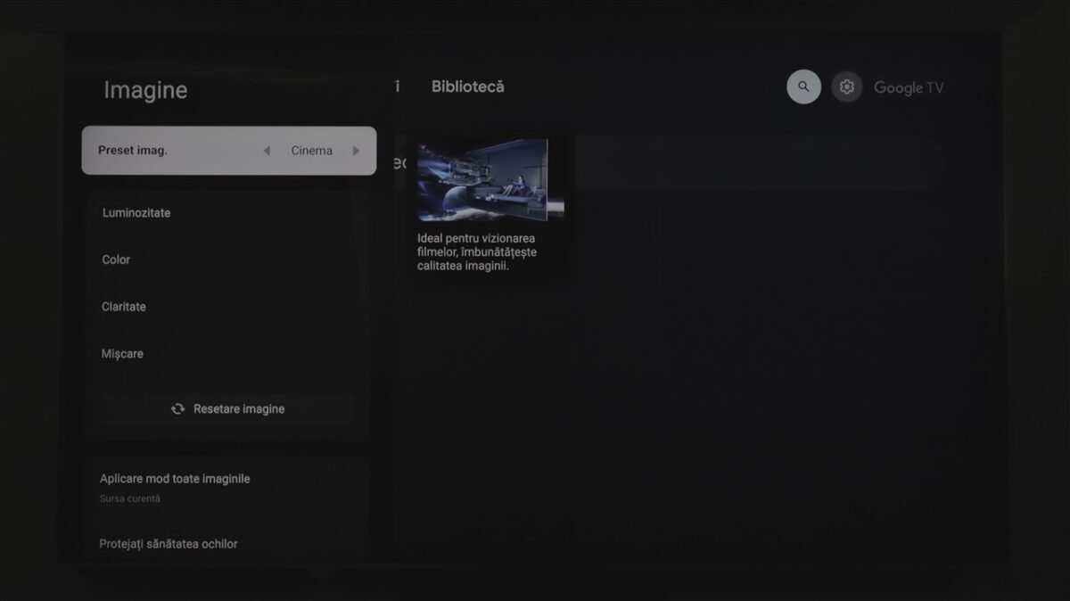 Un alt avantaj al Google TV este că integrează și tot ce ține de setările particulare ale oricărui TV direct în interfață. Fiecare producător poate aduce în acest meniu ceea ce dorește și ceea ce suportă televizorul, iar mai jos vedem ce propune TCL 65C9K (câteva imagini, sunt muuult mai multe setări disponibile).