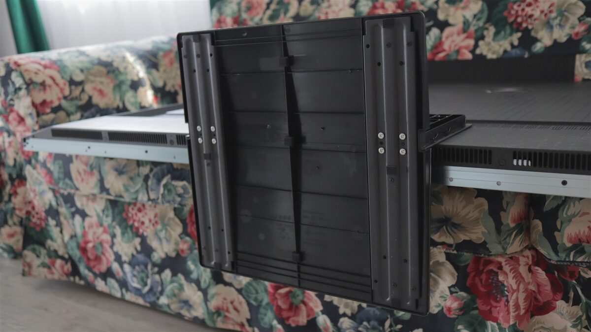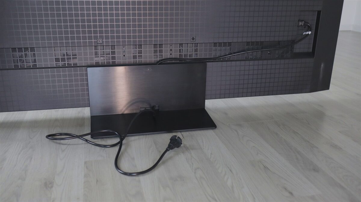 Montarea standului se face destul de rapid și nu este nimic complicat. Apoi, poți trage cablurile prin spatele standului, cabluri pe care le vei acoperi, cel puțin pe zona centrală, cu capacul din plastic.
