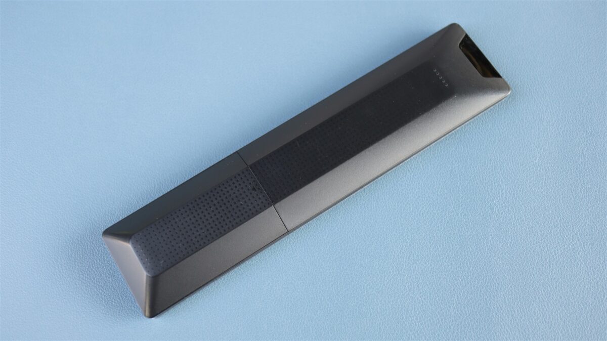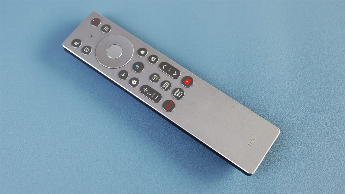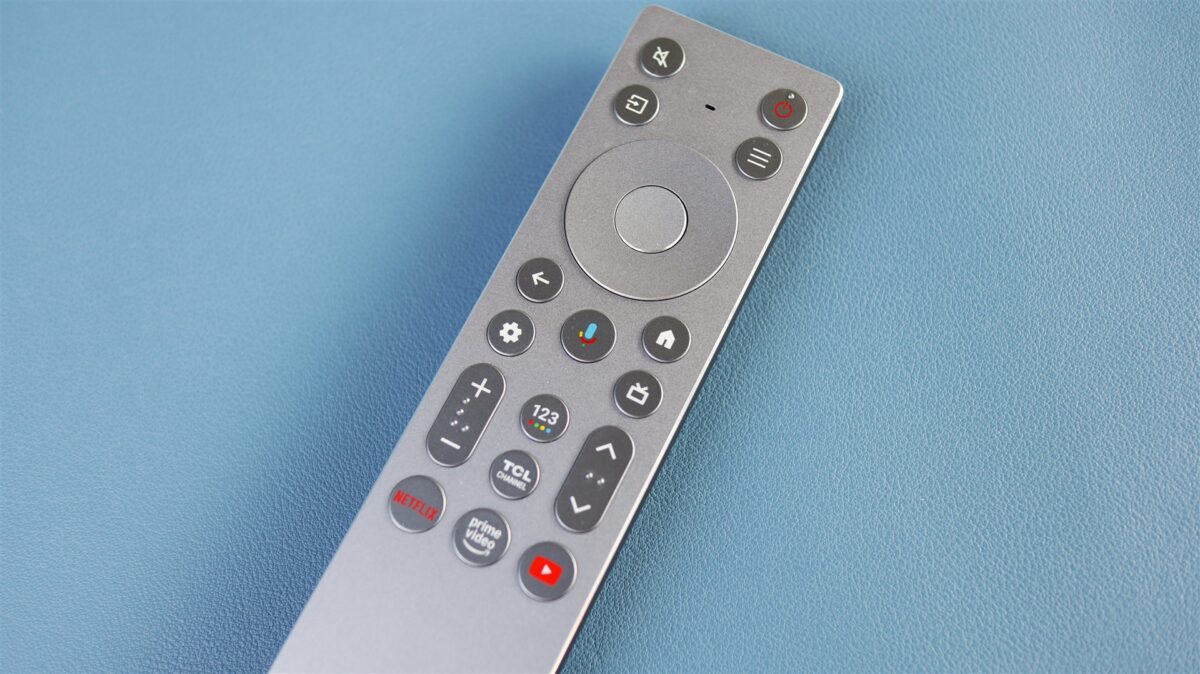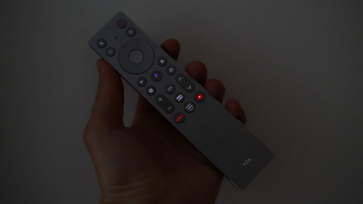 TCL 65C9K vine cu o telecomandă care are atât partea clasică IR de control, dar care se poate conecta și prin Bluetooth la TV. Telecomanda este îngustă, se așează bine în mână, nu este nici prea grea, dar nici prea ușoară. Este argintie pe partea frontală (unde este din aliaj metalic) și neagră pe spate (plastic).