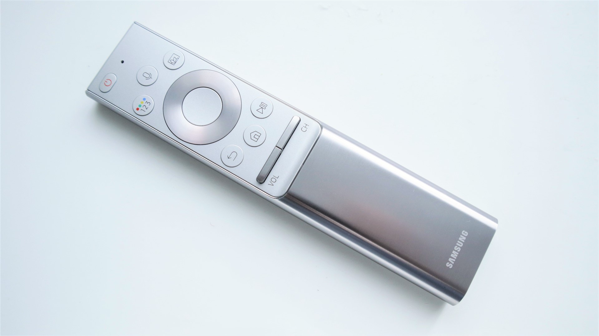 Telecomanda modelului Samsung QE65Q9FNAT este una extrem de elegantă și micuță. Se simte foarte plăcut în mână, fiind fabricată în cea mai mare parte din metal. Este construită solid și finisată cu atenție la detalii.