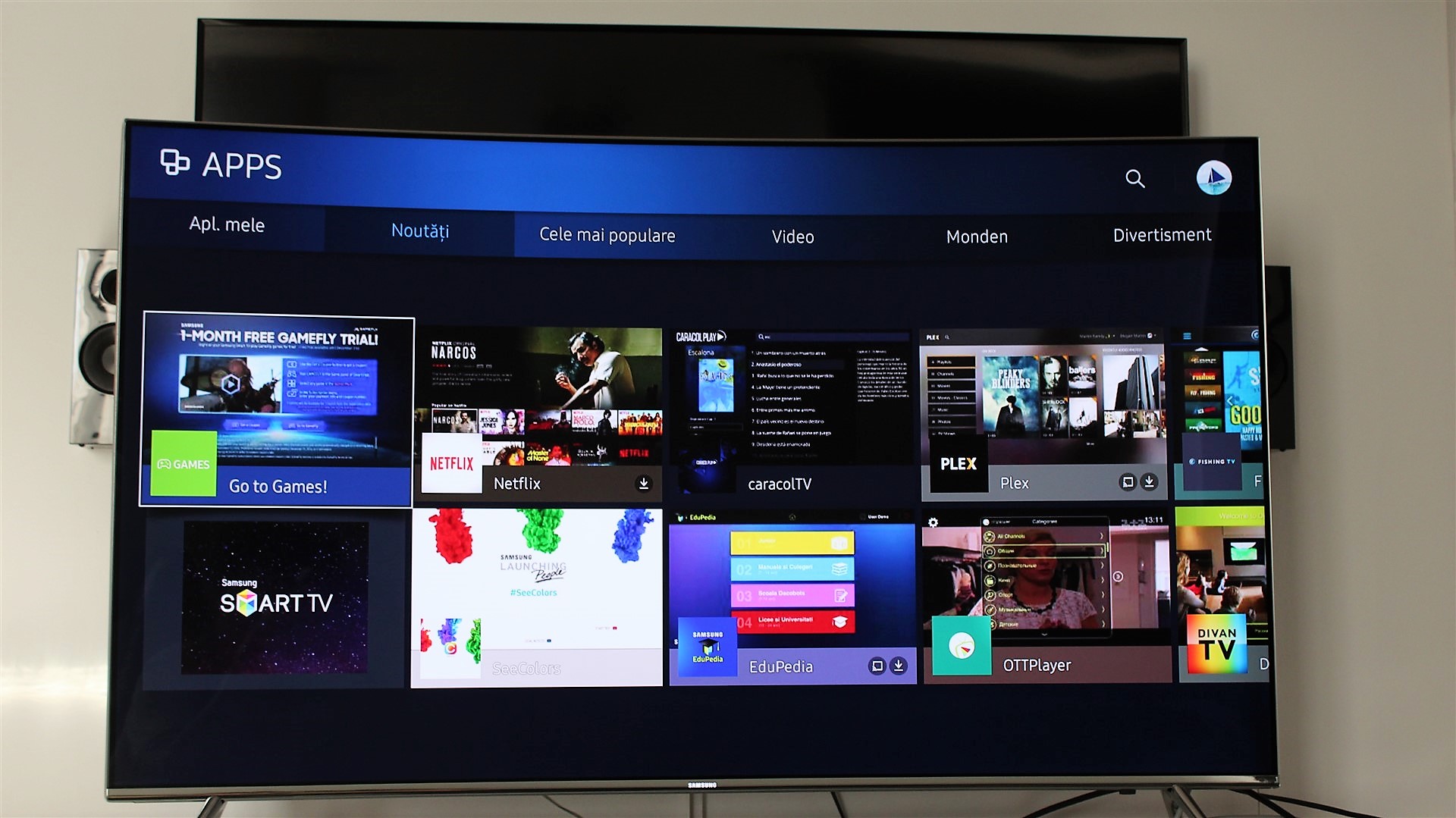 Vorbim despre web browser, YouTube, Netflix, HBO GO, PLEX, Facebook, TuneIn Radio, Dolce Sport sau Yupp TV. Destul de puține preinstalate, dar poți alege alte câteva care te insteresează din magazinul de aplicații pus la dispoziție de Samsung.