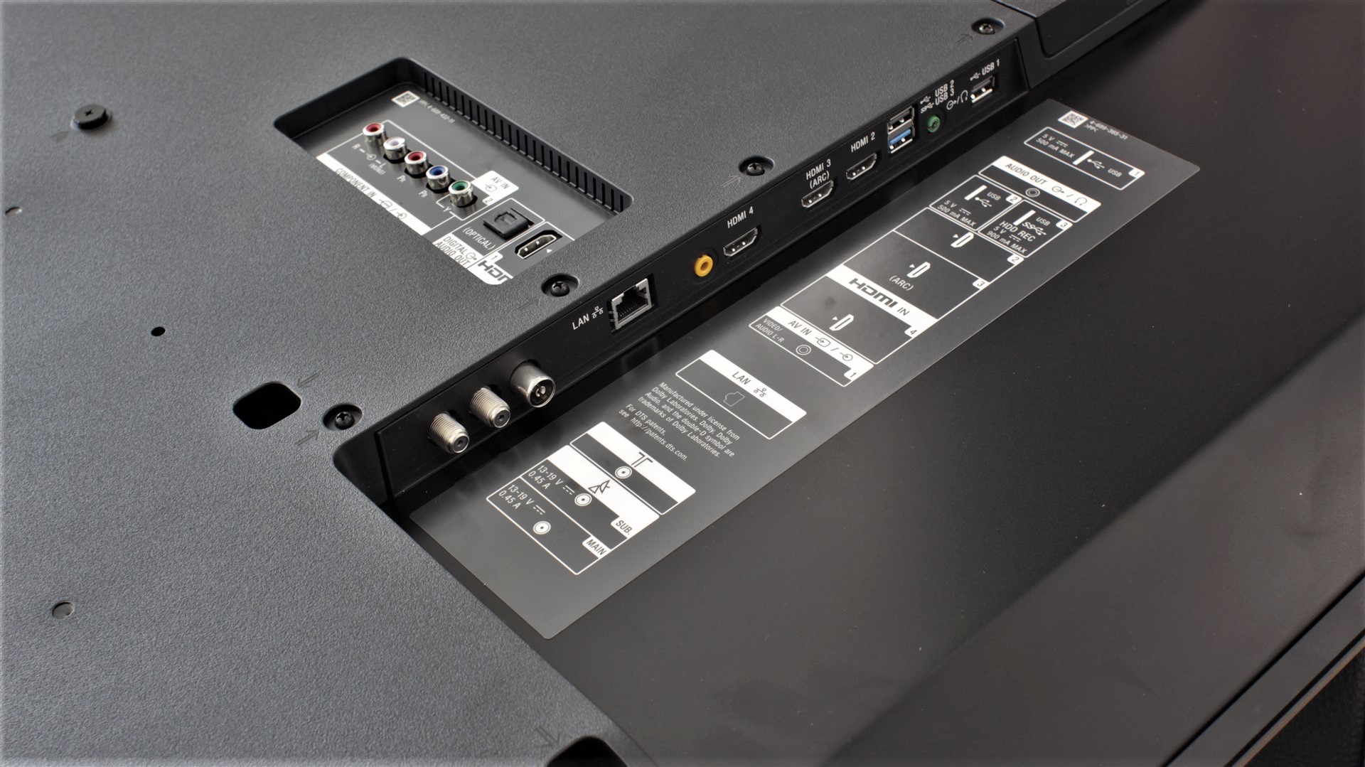 Conexiunile sunt amplasate pe spatele televizorului, către partea din dreapta, dispuse în două zone. Unele sunt accesibile din lateral, altele direct din spate. Mufa de alimentare se află undeva mai spre stânga.