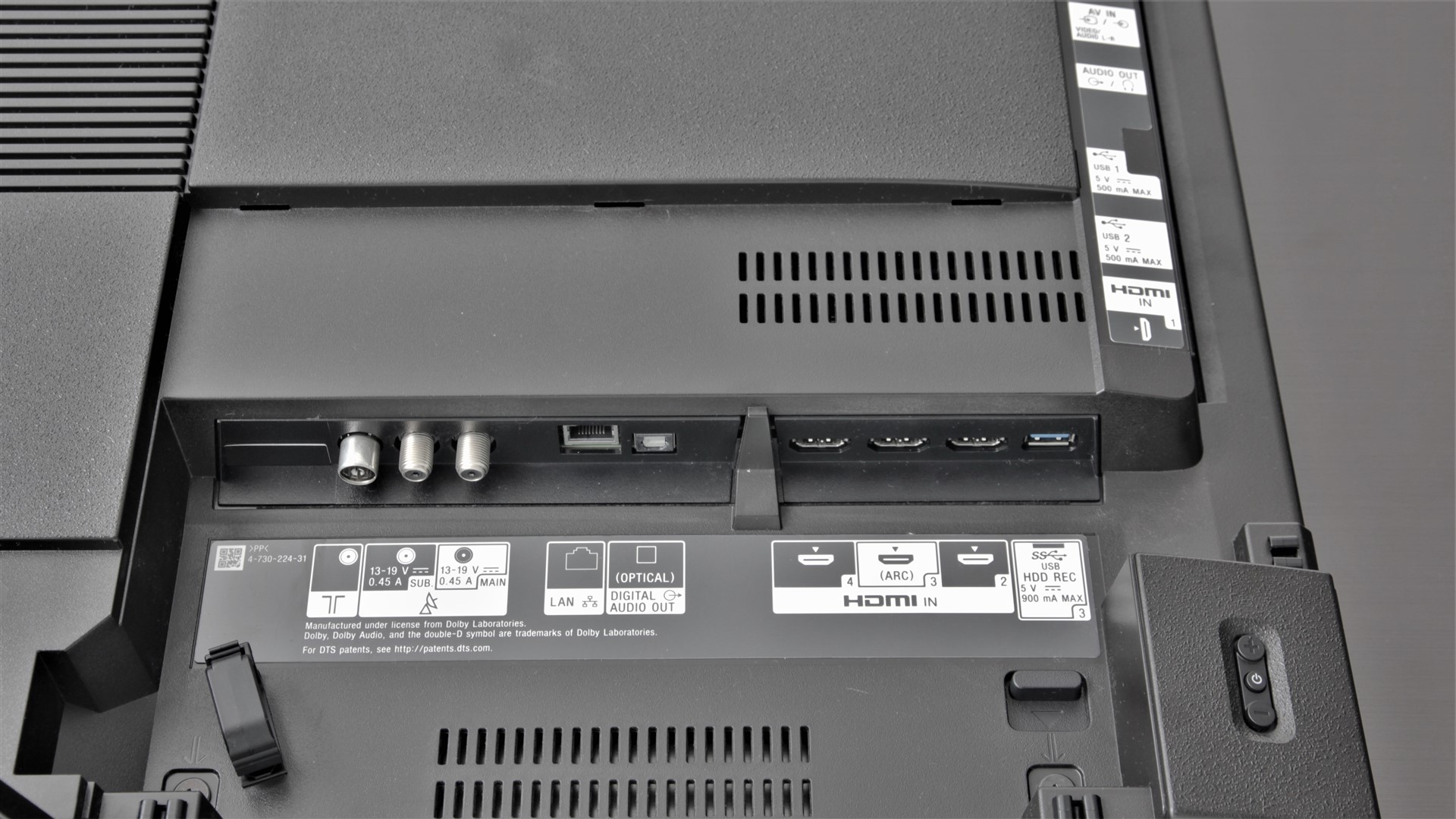 Sunt 4 porturi HDMI, 3 x USB 3.0, ieșire audio digitală optică și slot CI+, ca bază. Apoi găsim și ieșire de căști pe 3.5 mm și intrare video composite. Să nu uit de LAN prin port RJ-45 și de cele 3 intrări de semnal tv – cablu, terestru și satelit.