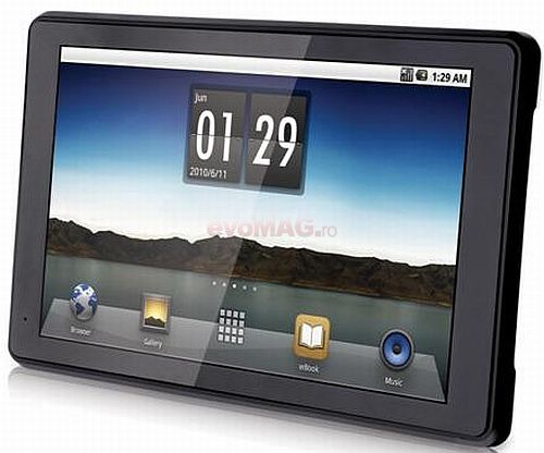 Are un display TFT LCD de 7 inch cu rezoluţie de 800 x 480 pixeli. Procesorul este ARM 11 de 800 MHz,256 MB RAM, memoria internă este de 4 GB şi poate fi extinsă cu card T-flash până la 32 GB. Rulează Android 2.1, are Wi-Fi, port miniUSB, 3G şi redă formatul FullHD la 1920x1080p. Bateria este Li-Ion de 3400 mAh şi rezistă în stand-by până la 76 de ore.