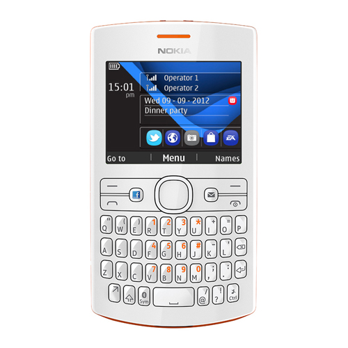 Cel mai ieftin telefon dual-sim cu tastatură qwerty de la Nokia: display de 2.4 inch cu rezoluție 320×240 pixeli, 94 gr., 13 mm grosime, baterie de 1020 mAh, cameră de 0.3 Megapixeli, radio FM streo, GPRS, bluetooth, slot pentru microSD. Mi se pare a avea una dintre cele mai echilibrate oferte din cele zece telefoane.