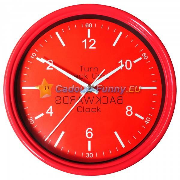Eşti la muncă şi abia aştepţi să treacă timpul ca să pleci acasă? Ce ai zice de un ceas care se mişcă invers, antiorar? Ar fi ca şi cum timpul s-ar întoarce „înapoi”. Totuşi, acest ceas funcţionează foarte bine, arătând excelent ora exactă, însă invers. Îl puteţi găsi la un preţ de 76 RON în culorile albastru şi roşu.