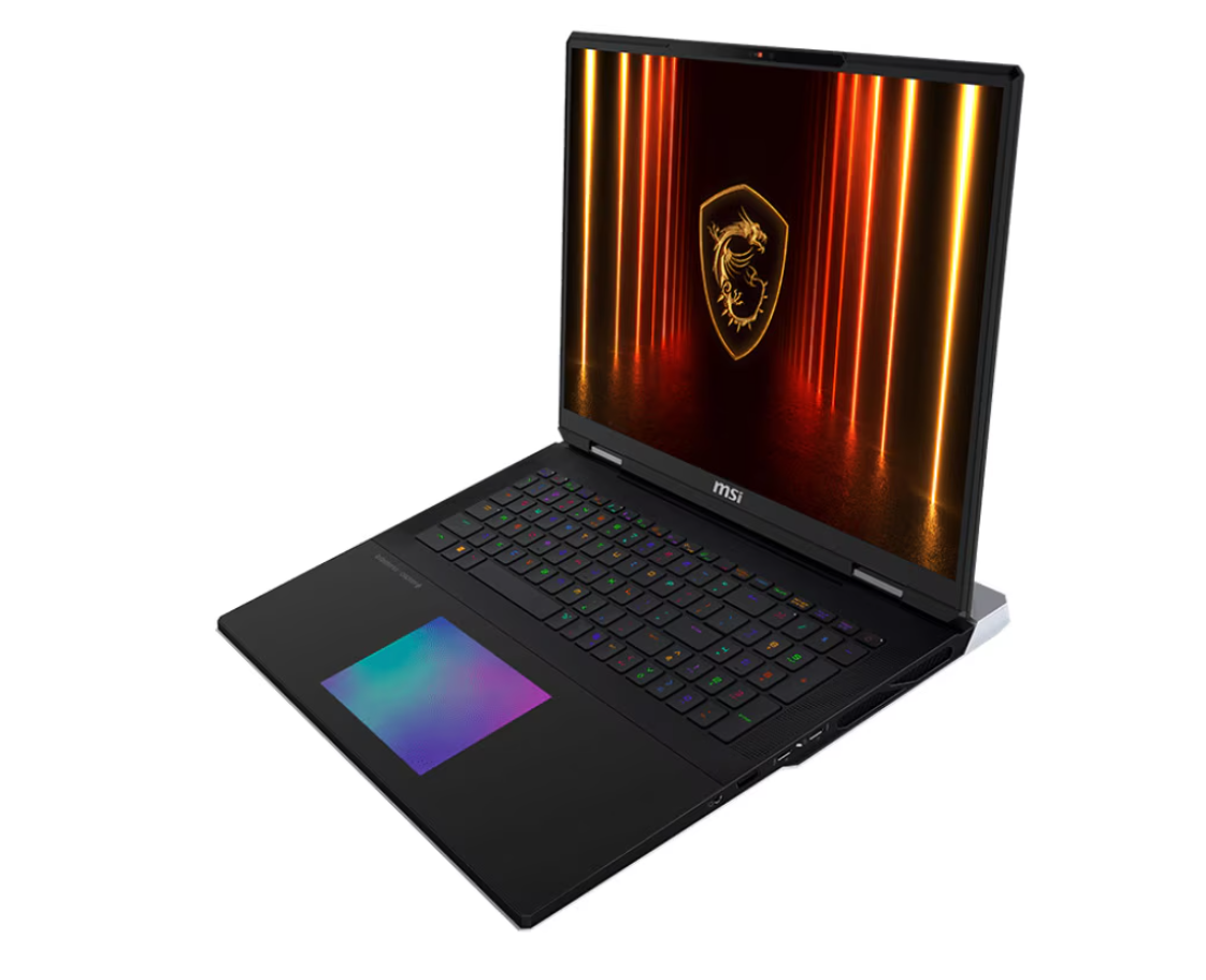 Mai sus veți descoperi un laptop de gaming ce mi se pare a fi un veritabil desktop replacement. Diagonala ecranului Mini LED este de 18 inci, iar rata de refresh a display-ului cu rezoluție de 3840 x 2400 pixeli este de 120Hz. La nivel de procesor au ales un Intel Core Ultra 9 285HX din seria Arrow Lake cu 24 de nuclee ce ating maxim 5.5 GHz. Vedeta mi se pare a fi placa grafică dedicată NVIDIA GeForce RTX 5090 cu 24 GB GDDR7 alocat și TGP de…, 175W. CPU + GPU se ajunge la 270W, iar adaptorul pentru bateria de 99Wh este de…, 400W.