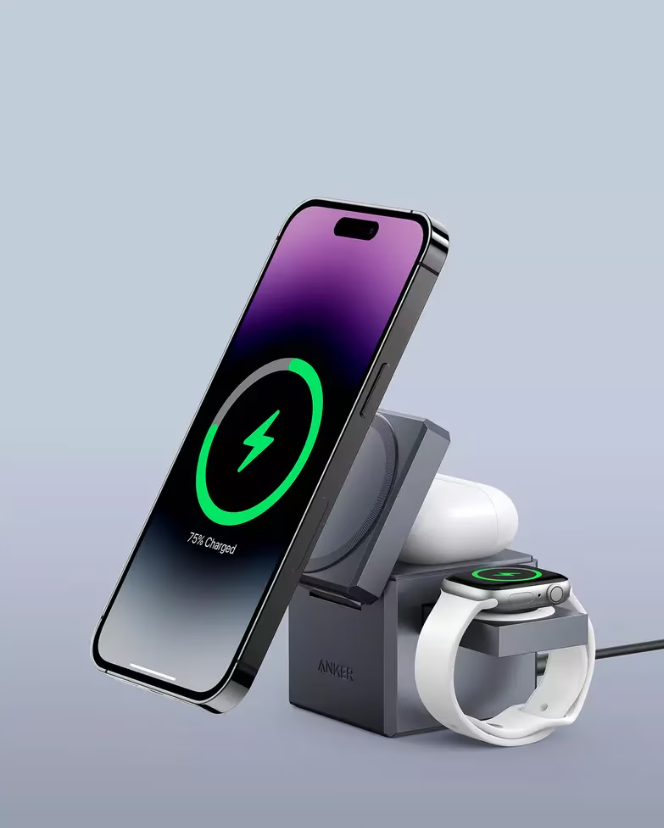 2. Încărcător wireless Anker 3-in-1 Cube MagSafe pliabil 🖱️