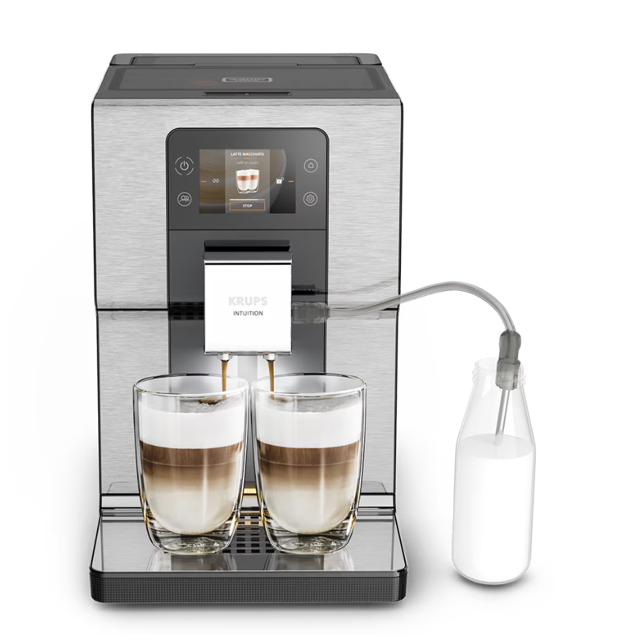 Puteți aplica o reducere de 20% prin codul extraelectro. Prin lista de 17 produse preparate se află cappuccino, latte macchiato, caffe latte, espresso intenso, macchiato etc. Îmi place și designul său cu un panou de inox în partea frontală.