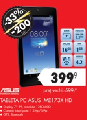 Locul 4: ASUS Memo Pad HD 7 -> 399 lei – reducere 33% la Flanco