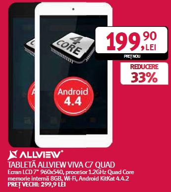 Locul 1: Allview VIVA C7 Quad -> 199 lei – reducere 33% la Altex