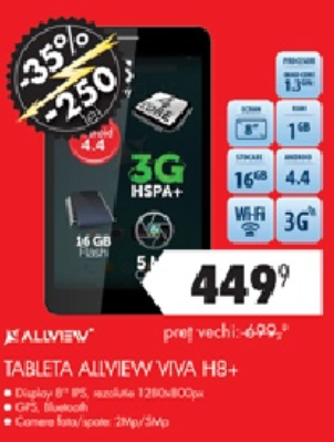 Locul 5: Allview VIVA H8 Plus -> 449 lei – reducere 35% la Flanco