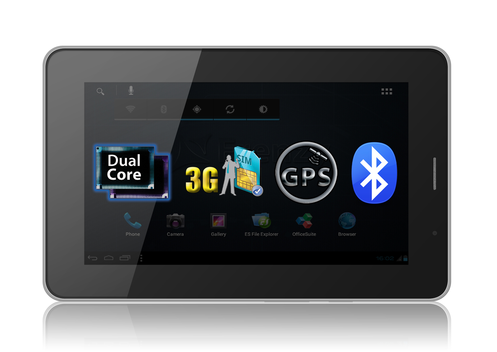 Nu am auzit de acest brand și observ că evoMAG a ales să le vândă produsele. La fel ca și Lenovo este o tabletă dual-sim și imaginea de fundal este preluată de la LG Nexus 4. Folosește un CPU single core la 1 GHz, 512 MB RAM, 4 GB spațiu de stocare, Android 4.0, baterie de 4000 mAh, Wi-Fi, 3G, miniUSB, cameră de 2 Megapixeli + 0.3 Megapixeli în partea frontală. Față de tableta Lenovo are 512 MB RAM și cred că lag-ul s-ar putea să fie și mai puternic.