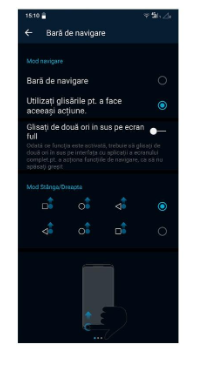 3. Navigare prin gesturi bazate pe swipe – iOS style ca să spun așa. Sunt utile pentru cei ce vor să aibă tot ecranul la îndemână și nu sunt de acord ca spațiul de bază să fie ocupat de tastele de navigare. Cu glisarea unui deget pe ecran aveți acces la funcții cu rol de back, ieșire pe ecranul de start sau aplicații recente;