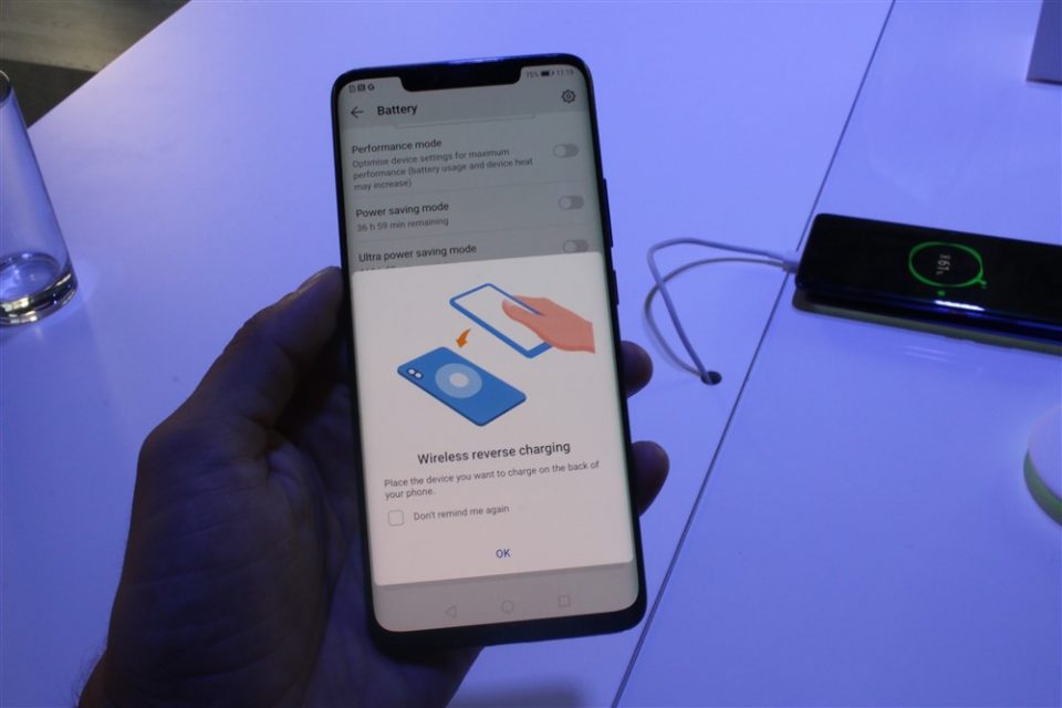 Bateria lui Huawei Mate 20 Pro este de 4200 mAh. Se încarcă de la 0 – 70% în…, 30 minute. Avem și încărcare wireless pe 15W în standard Qi + o funcție ce debutează în premieră absolută: încărcare wireless reversibilă.