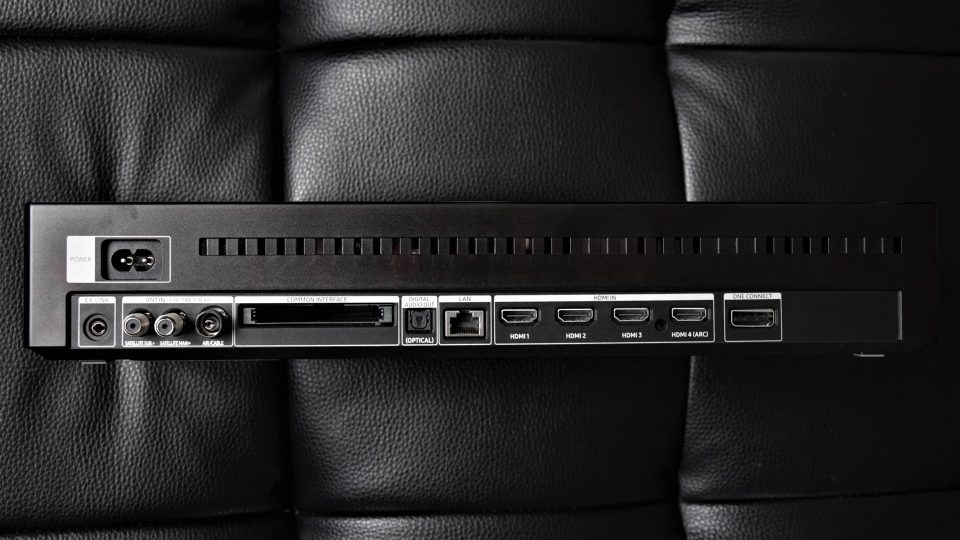 Samsung a reușit să aducă televizoare ce impresionează printr-un design elegant și minimalist. Partea de conectivitate a fost mutată în smart box și un singur cablu face legătura între smart box și televizor. Nici măcar antena nu mai este adusă în spatele televizorului. Cablul se numește One Invisibile Connection și este translucid, nici nu-l remarci. Dacă optezi pentru un stand Samsung și montare în centrul camerei etc, niciun cablu nu ajunge a fi la vedere.