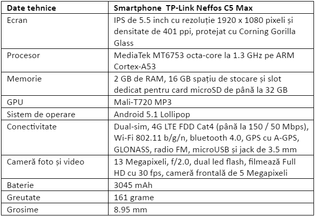 TP-Link Neffos C5 Max – 899 de lei, preț recomandat de comercializare.